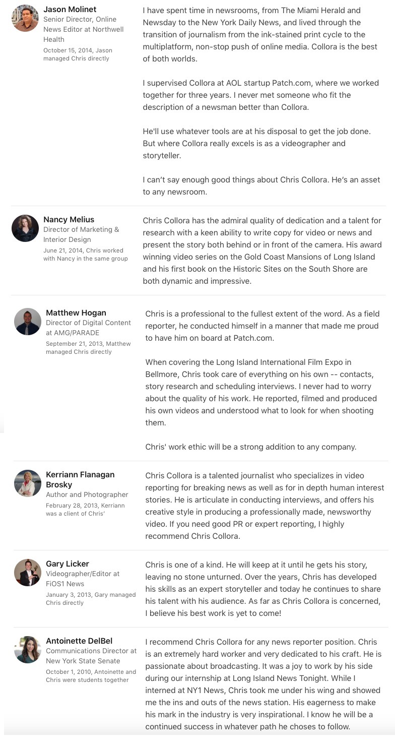 10th September 2017 Recommendation Letter from AOL's Patch.com Former AOL Patch.com Long Island Regional Editor Jason Molinet wrote this letter of recommendation about my work for Patch.com.